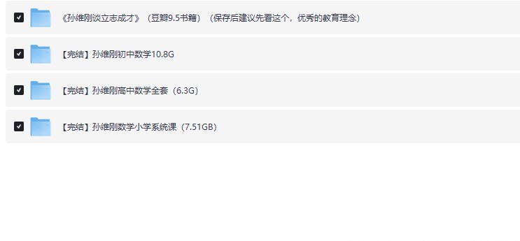 这是一套由著名数学教育家孙维刚老师精心编写的数学教辅资料,覆盖小学、初中、高中全阶段,旨在帮助学生系统构建数学知识体系,提升逻辑思维与解题能力。孙维刚老师以深入浅出的讲解风格和独到的教学方法闻名,本套资料不仅紧扣教材重点难点,更注重启发式教学,引导学生从“学会”到“会学”。每册内容结构清晰,例题详实,习题丰富,并配有详细解析,适合自学巩固或课堂补充。无论是打基础、提成绩,还是备战各类考试,这套资料都能成为学生和家长的得力助手,陪伴孩子一路成长,轻松攻克数学难关。