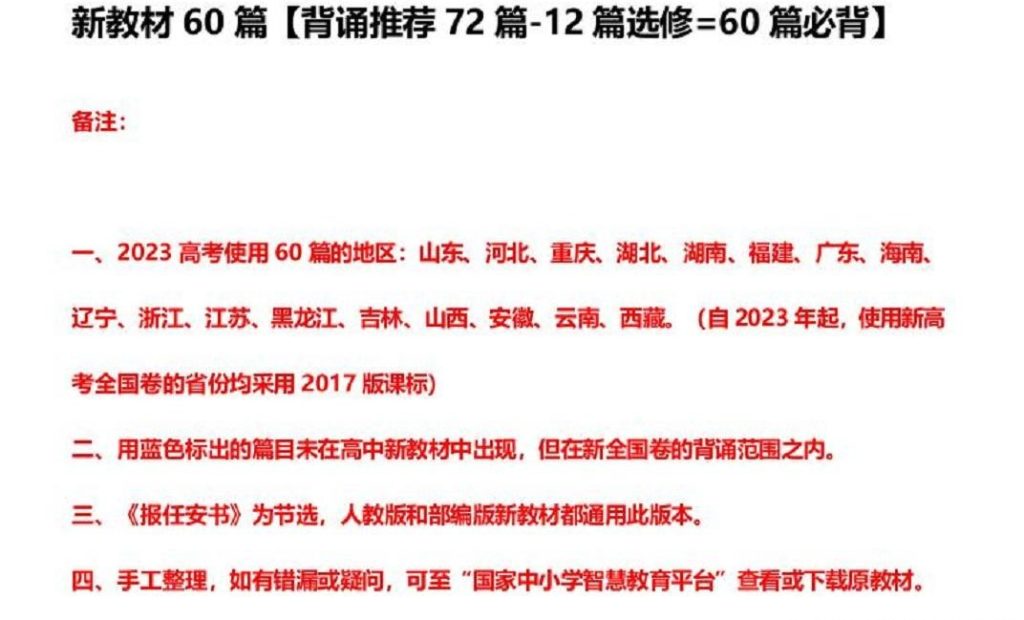 2024最新高考语文背诵篇目PDF百度网盘下载 2026-02-02 中小教育 42 2024最新高考语文背诵篇目PDF百度网盘下载 资源下载免费资源文件1地址点击下载 下载地址1立即下载 资源声明: 本页面所提供的所有资料、教程、素材等内容,均来源于互联网公开渠道整理与用户分享。 “快学资源”仅对相关内容进行归类整理与展示,不拥有原始版权。 所有资源仅供个人学习与研究使用,请勿用于商业或非法用途。 如涉及版权问题,请联系客服处理,我们将积极配合下架相关内容。 访问本站即表示您已阅读并同意以上声明。