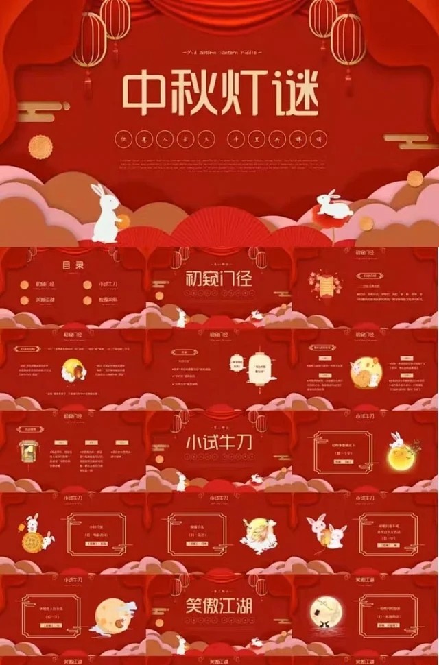中秋节猜谜大会趣味猜字谜猜灯谜PPT课件成品模板百度网盘下载