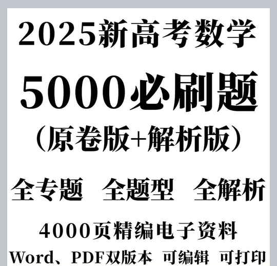 数学突破,一步到位!《2025高考数学必刷5000题》考生攻克每一个难关,夯实基础、提升能力,轻松冲刺高分。