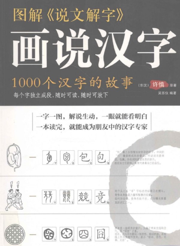 《图解〈说文解字〉画说汉字:1000个汉字的故事》对研究古文字和古汉语来说,是不必可少的重要资料。作者许慎是东汉时期汝南召陵(现河南郾城县)人,性格淳朴诚信,博览群书。从古至今,研究《说文解字》的学者们既推崇这部经典,也敬重许慎的为人,均尊称许慎为”许君”,称《说文》为”许书”,称传其学为”许学”。